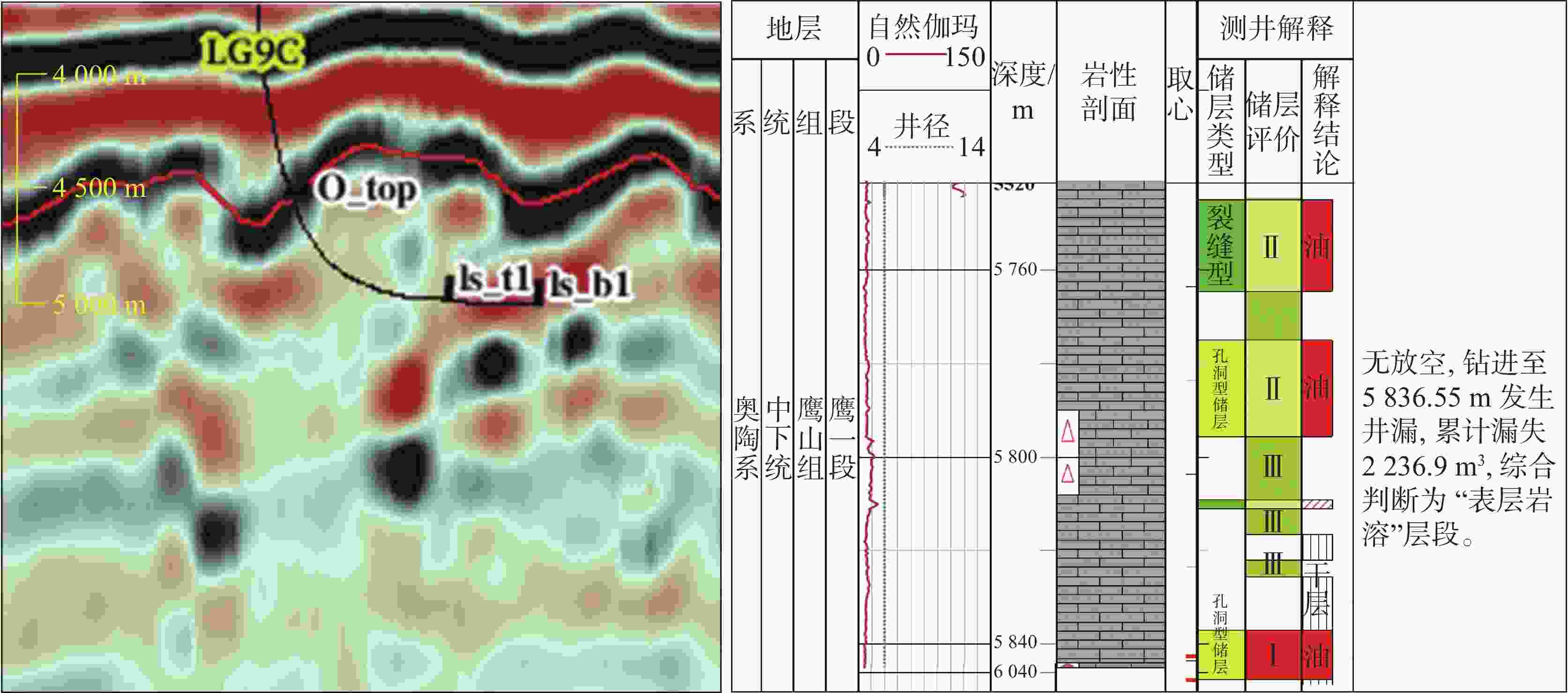 Table 2. Seismic response characteristics of karst reservior of Ordovician Yingshan Formationin the Lunguxi block