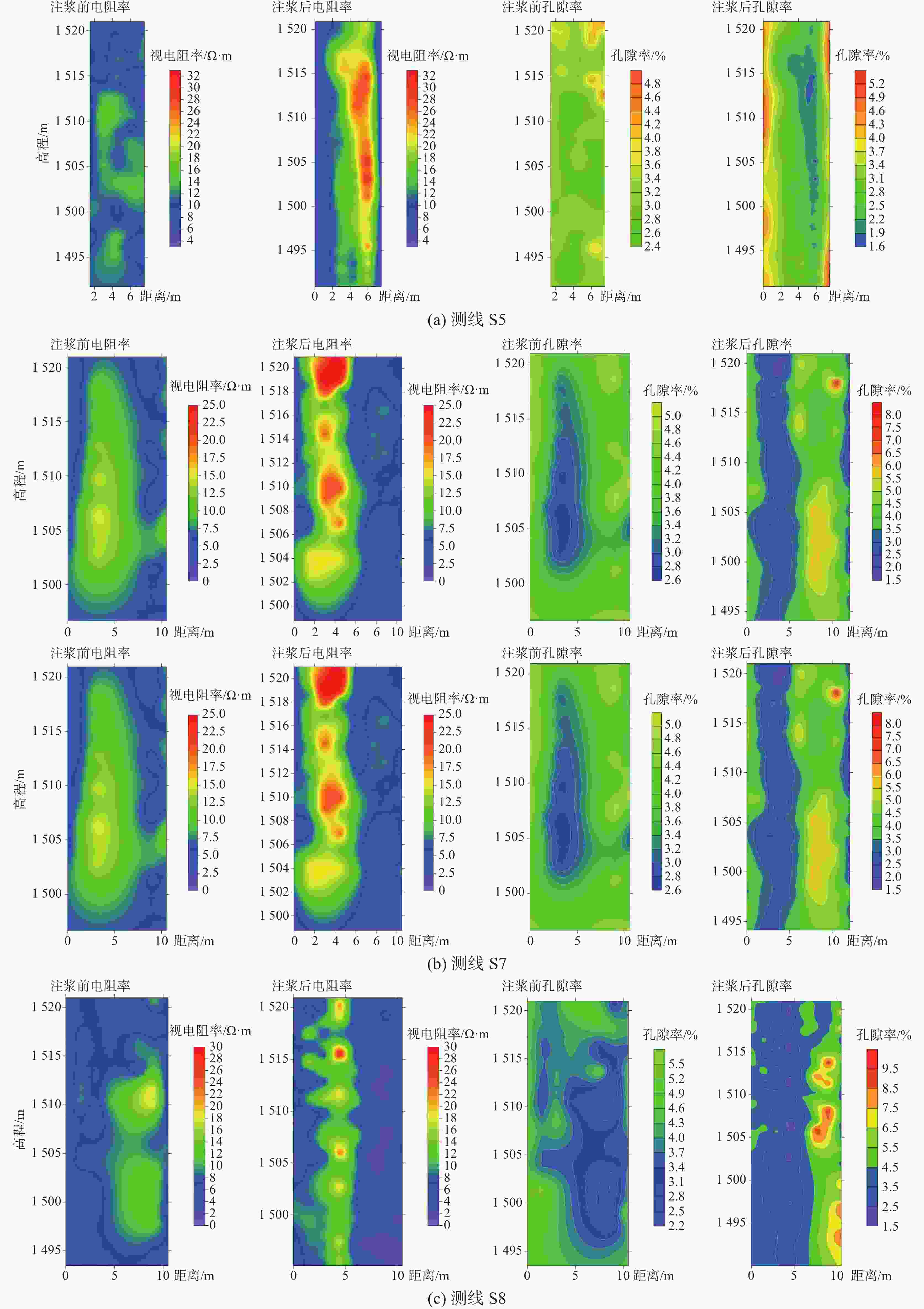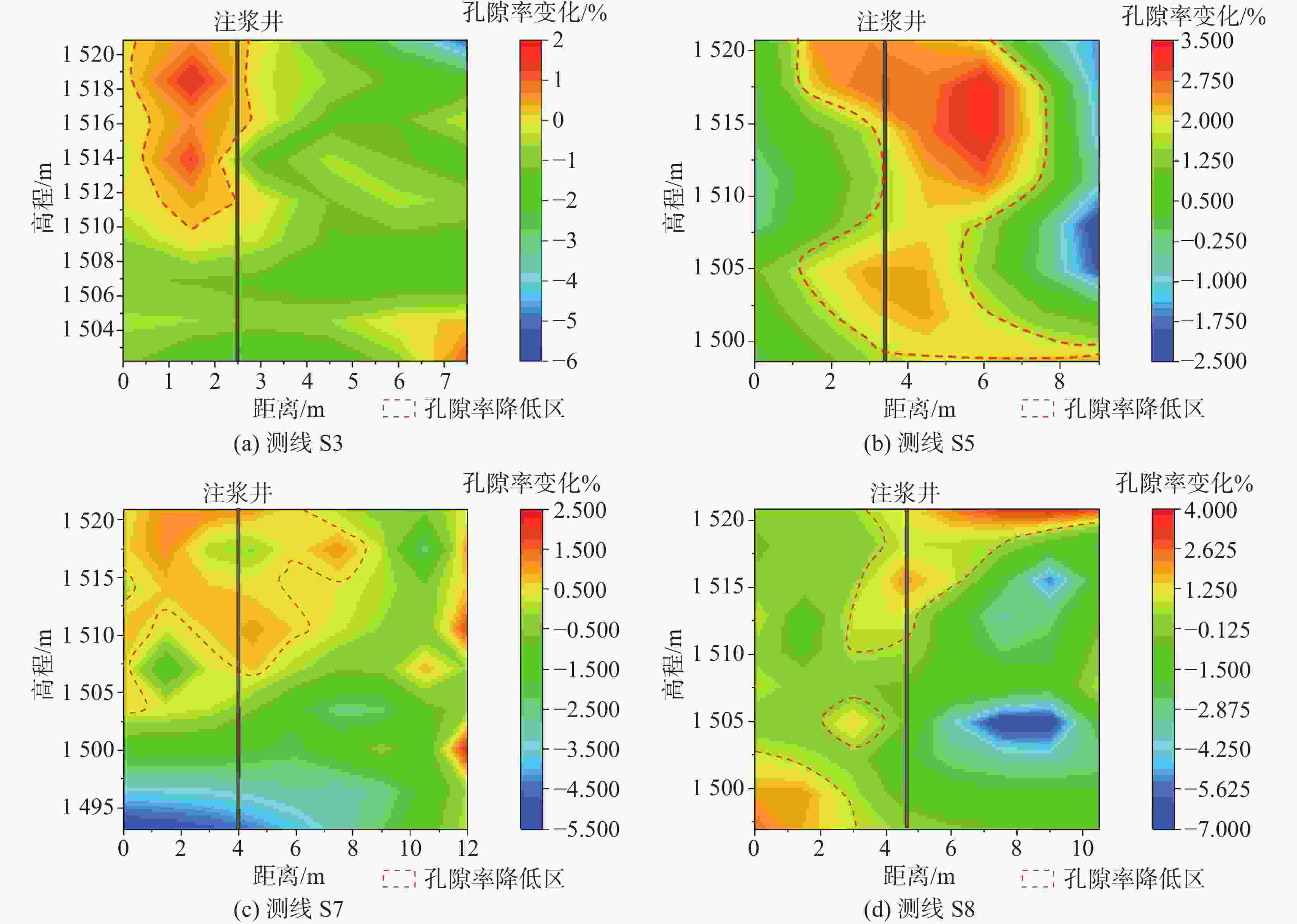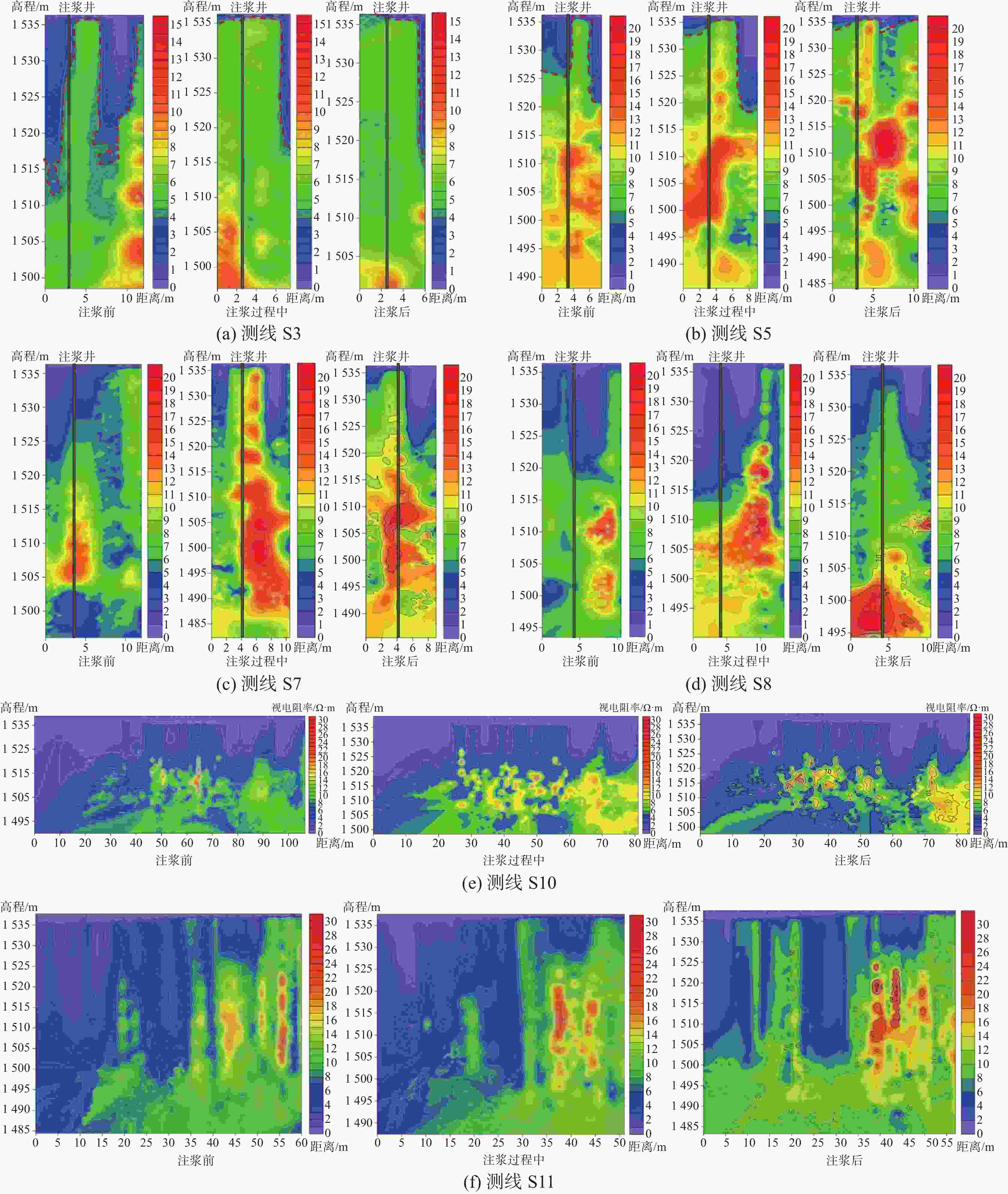 S10 无明显效果 测线距离注浆井较远
