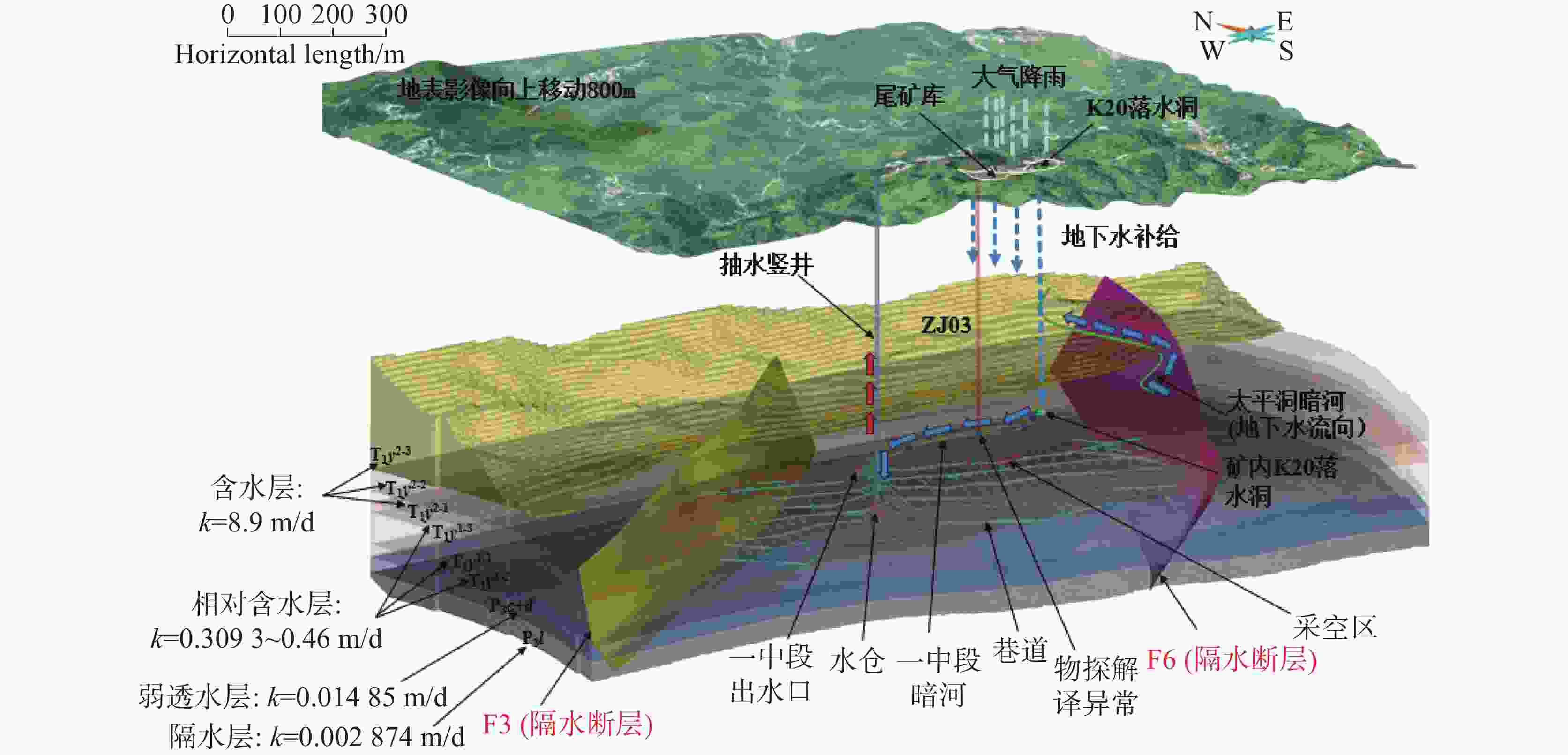 Figure  2.  The hydrogeological conceptual model of the Zimudang Gold Mine